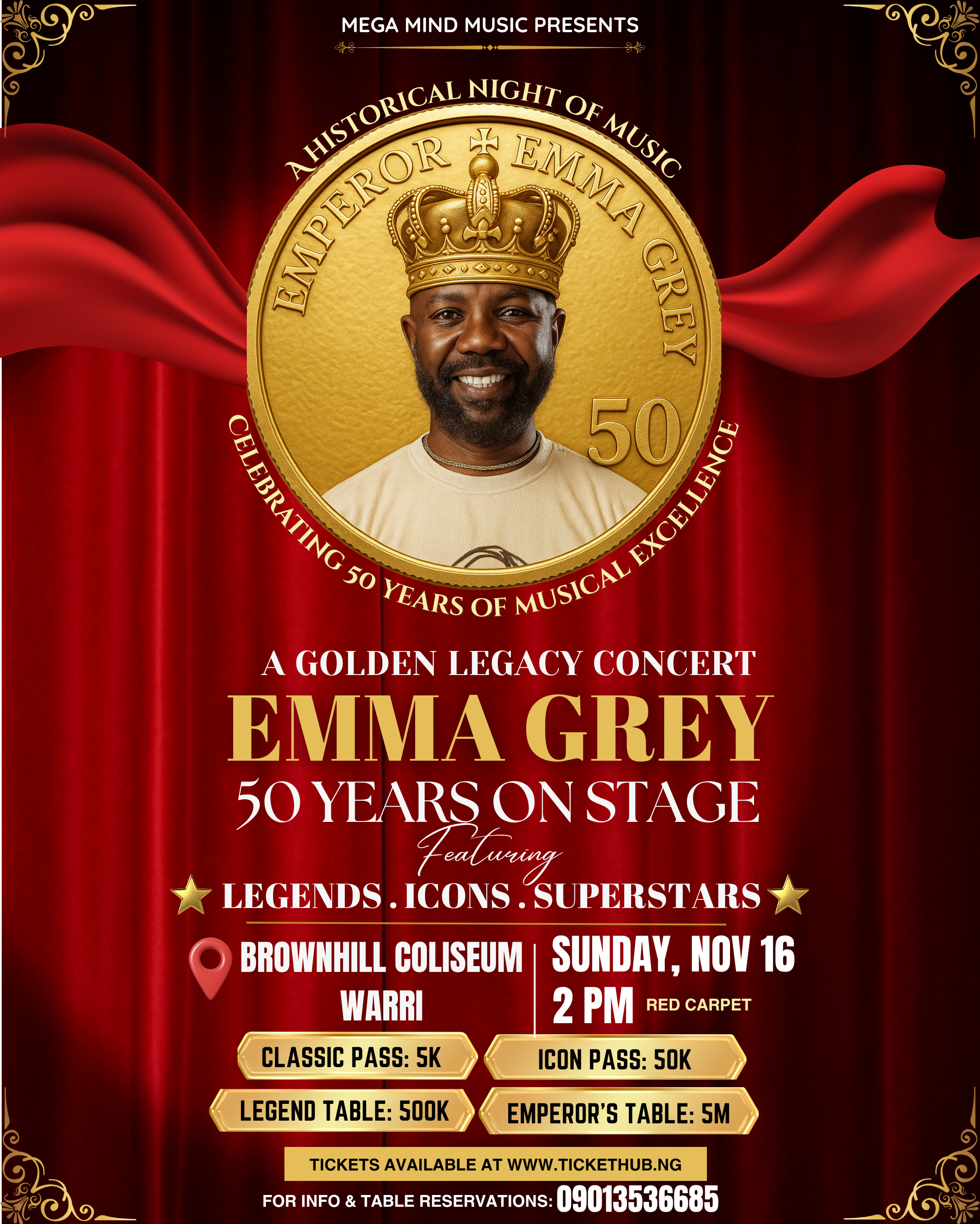Step into an unforgettable night of music, comedy, dance, and drama as we celebrate Emperor Emma Grey’s 50 remarkable years on stage — a journey of art, passion, and timeless impact.